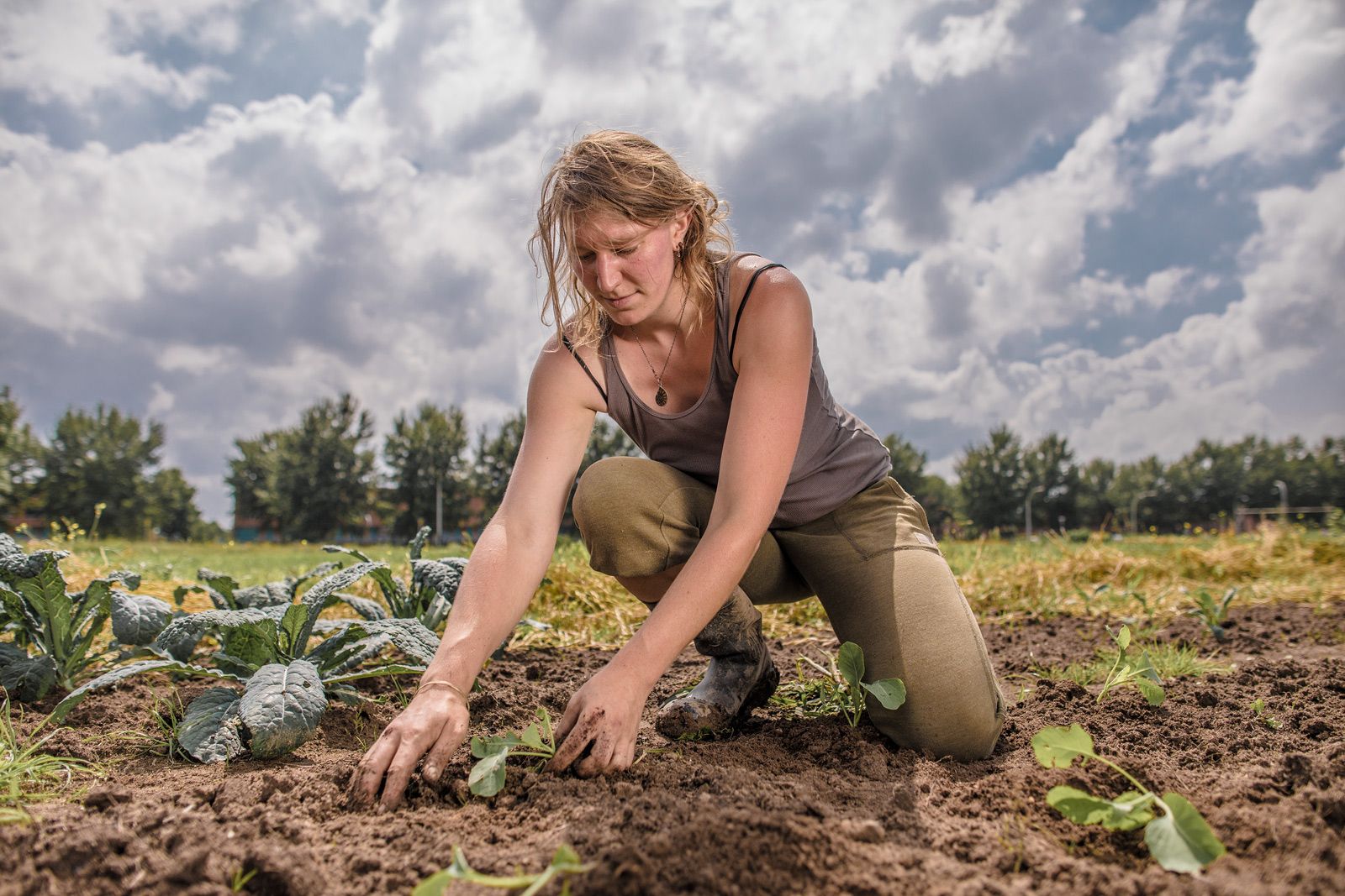 " Als dochter van twee leraren in de Nederlandse taal, ben ik niet opgegroeid in de landbouw. Eigenwijs ben ik rond mijn 18e jaar gaan rondreizen in Frankrijk. In deze reis kwam ik, voor het eerst, in aanraking met het verbouwen van voedsel. Dit maakte zo'n indruk op mij dat ik toen ik terugkwam, de beslissing heb genomen om de vier jarige voltijds opleiding aan de Warmonderhof (Biologisch Dynamische Landbouw) te Dronten, te volgen.